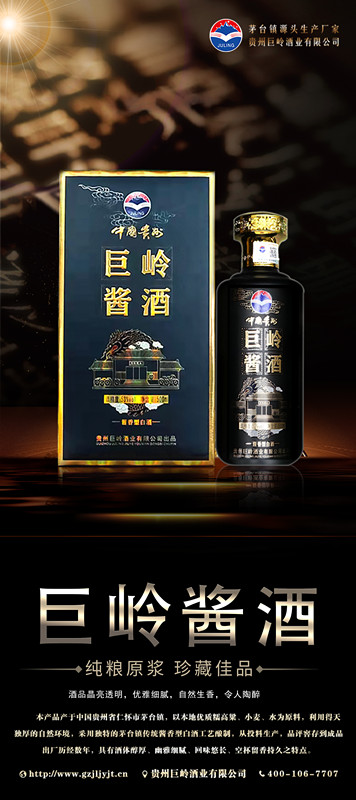 貴州巨嶺酒業(yè)有限公司,座落于聞名世界的古鎮(zhèn),國酒之鄉(xiāng)“茅臺鎮(zhèn)”。與“國酒茅臺”共享得天獨厚的氣候、土壤、水源、以及微生物群等自然資源;《巨嶺酒業(yè)》老作坊前身“巨嶺燒坊”,經(jīng)過多年的傳承,秉承先輩們代代相傳的古法釀造工藝,歷經(jīng)幾代人的延續(xù)和釀酒發(fā)展,奠定了《巨嶺酒業(yè)》發(fā)展的堅實基礎(chǔ)。